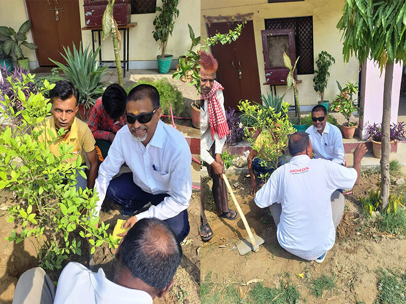 पौधा रोपण करते शिक्षक कर्मचारी